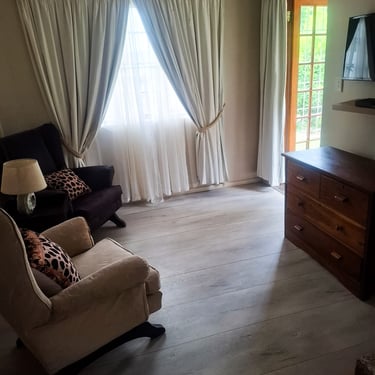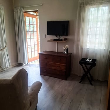 Step outside to your own private garden and unwind in the dedicated outdoor seating area—perfect for morning coffee, afternoon reading, or evening chats under the stars. Barbecue facilities are also available, inviting you to enjoy outdoor dining and traditional South African braais in a relaxed, scenic setting.