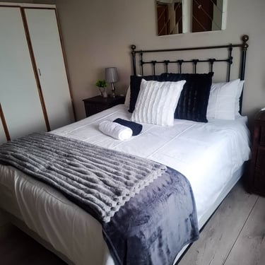 Located in a peaceful neighborhood, Flat 1 is just minutes away from the Ladybrand Golf Course and other local attractions. You’ll be close to shops, cafés, and scenic spots while enjoying the quiet charm of the surrounding garden views. Secure, on-site parking is provided free of charge.